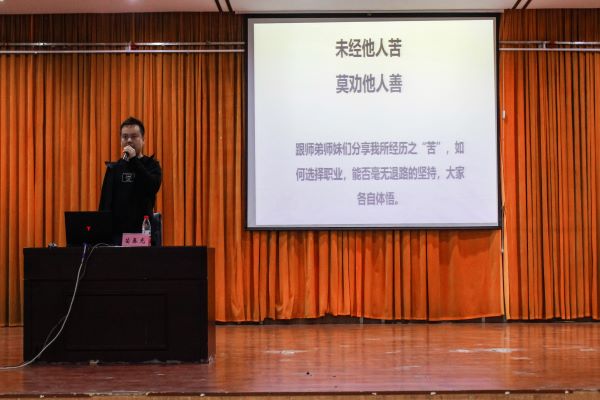 11月18日下午14时,英国365集团官网于翡翠湖校区图书馆报告厅举办“走向职场,走向未来”系列讲座第三讲之“选择与坚持”,主讲人是安徽骆华生物科技有限公司联合创始人、执行董事兼总经理,2009届员工苗春光。 我...
