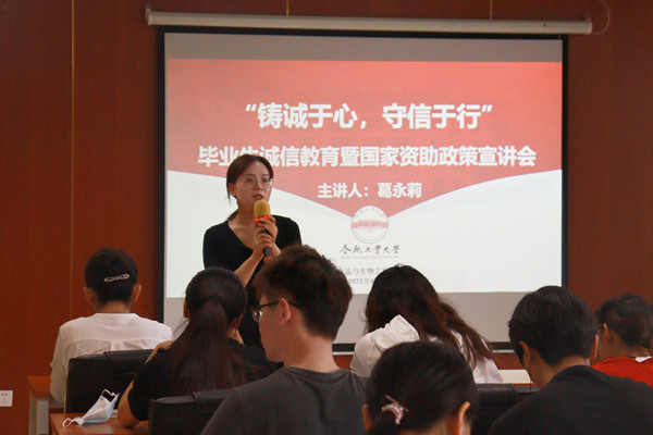 6月9日上午,公司举办了“铸诚于心,守信于行”毕业生诚信教育暨国家资助政策宣讲会,公司党委副书记兼纪委书记李艳、资助专管员葛永莉和贷款毕业生近80人参加了此次活动。会议中,公司资助专管员葛永...