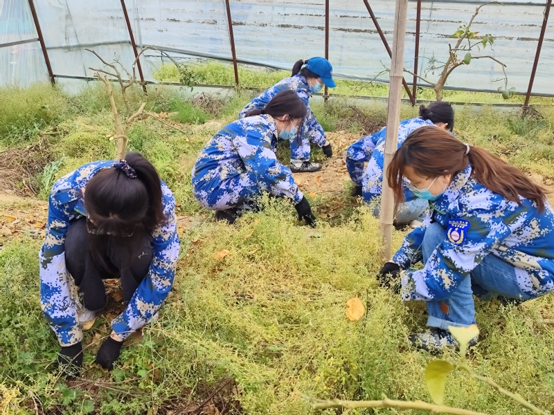 舒鑫农场的负责人向参加劳动实践的师生介绍了农场的基本情况,讲解了橘子和蔬菜种植采摘、拔除杂草、土地疏松的具体要求与安全注意事项,并为同学们进行劳动示范。随后,同学们纷纷戴上手套,拿上竹篓、铁锹等工具,走进种植大棚,开展劳动实践。在指导老师和当地农户的指导下,同学们相互配合,热情似火,圆满完成任务。
