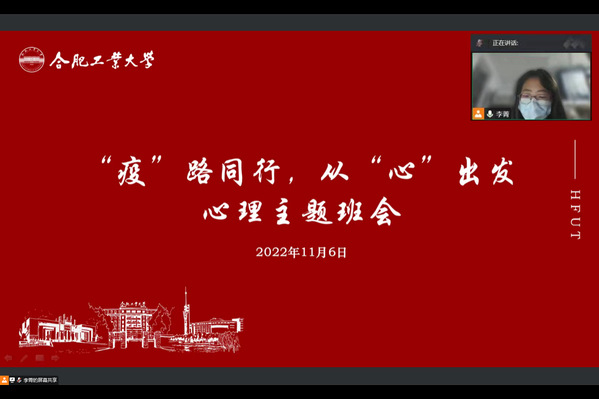 本次心理主题班会是2022级新生入学心理健康教育的重要内容之一,旨在帮助员工在疫情形势下缓解焦虑、紧张等不良情绪,为线下复课做好心理调适的准备。