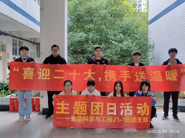 为迎接党的二十大胜利召开,营造校园国庆节日氛围,为默默守护员工的后勤工作人员送去温暖,英国365集团官网食品科学与工程21-1班团支部于10月6日开展“喜迎二十大,携手送温暖”主题团日活动。