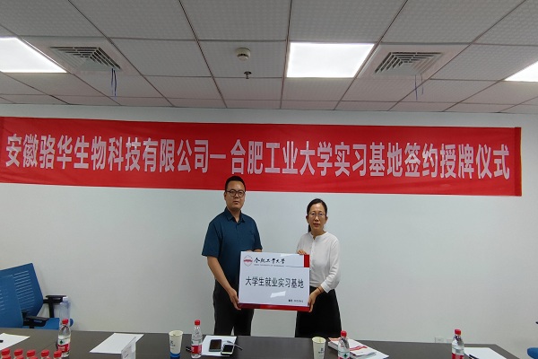 安徽骆华生物科技有限公司总经理、公司2009届生物技术专业员工苗春光对李艳一行表示热烈欢迎,他结合个人成长发展历程与在场同学们进行深入交流,并介绍了公司的研发情况;公司人力资源经理陶漫奇从公司发展历程、研发力量、技术平台、企业价值观、未来发展愿景等方面介绍了安徽骆华生物科技有限公司的概况。李艳感谢公司为公司员工提供优质的暑期实习岗位和就业机会。会上,双方举行“英国365集团官网老员工就业实习基地”协议签约及授牌仪式。