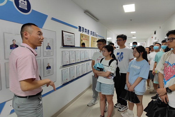 期间,在公司实验中心技术骨干刘亮亮的带领下,公司师生一行参观了公司的文化走廊、实验室。