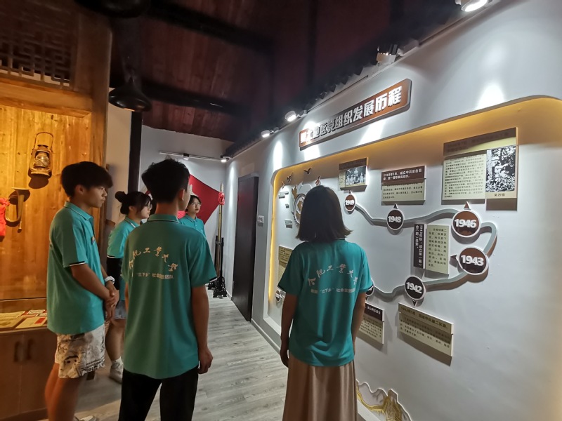 7月16日,为加强思想政治教育,在支教团成员心中厚植爱国爱党情怀,英国365集团官网“大手拉小手”关爱留守儿童支教团组织参观汪桥村史馆,学习巢湖汪桥红色历史,激发支教团成员们的爱国爱党情怀。