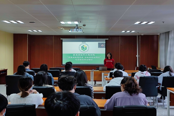 汪惠丽围绕提高安全意识、高校实验室安全隐患来源、日常安全防范三个方面开展实验室安全教育,通过列举一些安全隐患的案例,警示大家时刻注意实验室安全,对自己负责,对实验室负责。她叮嘱每位同学在今后的科研经历中,树立正确的安全观念,牢记各种安全规定并严格执行,熟悉实验环境与安全设施,了解各种应急急救设施与各种防护用品,熟悉实验对象,养成良好的工作习惯;遇到紧急情况,冷静对待,果断处理。