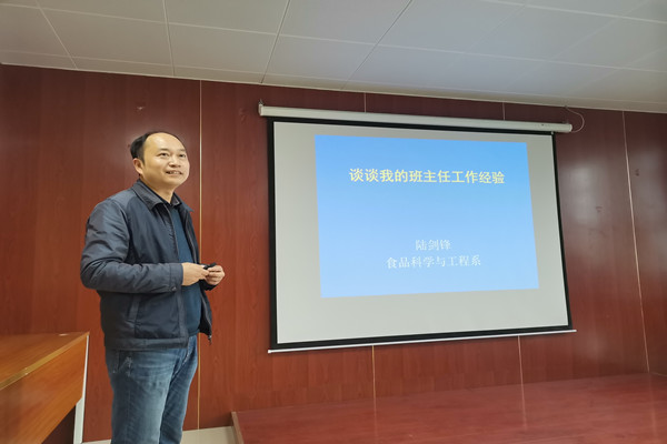 接着,校级优秀班主任陆剑锋、陶晗两位老师分别分享任职班主任的经历和经验,就开展主题班会、设计主题活动、与员工谈心谈话、指导和帮助毕业生就业等方面做了分享与总结,为各班主任提供了宝贵的经验。他们敬业的精神与严谨的态度,以及对员工热切的关心,赢得了大家的掌声。