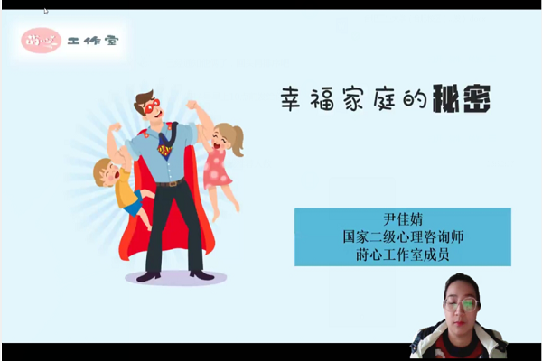 寒假期间,为引导员工与家人之间建立积极和谐的家庭关系,近日,党委员工工作部、莳心工作室邀请机械工程公司员工工作办公室主任、团委书记、国家二级心理咨询师尹佳婧开展“爱的能力提升”心理主题讲座之“幸福家庭的秘密”,来自全校各个公司的员工和家长们通过腾讯会议平台参加线上讲座。