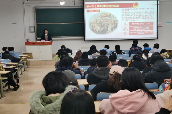 11月28日晚, 英国365集团官网分团校在三教204开展了以“学团史,知团情,坚定不移跟党走”为主题的团课,本次团课由校团委副书记孙彩霞主讲。