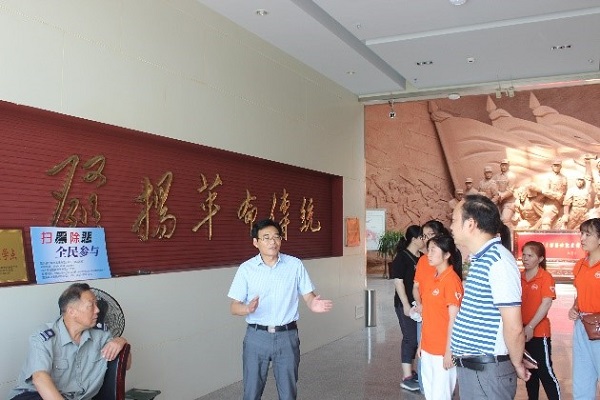 7月27日,团队来到了泗洪县陈圩乡大王庄革命圣地,满怀对中国革命先驱无限崇敬的心情,参观了新四军四师司令部旧址,观看了新四军四师的发展历程,并通过讲解员的讲解,了解了彭雪枫、邓子恢、陈毅等革命英雄的抗战事迹,深刻体会到战争岁月的艰苦,同时也为革命烈士奋勇抗战的英雄壮举而深深感动。