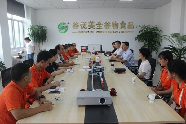28日下午,团队前往了安徽省凤阳县潘苗苗劳模创新工作室,与全国劳模潘苗苗女士展开学习交流活动。在聆听了谷优美全谷物食品公司董事长潘苗苗的介绍品牌和产品概念后,我们了解了公司的发展历程、品牌建设和党建文化,“谷优美”在品牌建设、党建工作等方面,都能踏踏实实落地生根,发挥示范引领作用,在行业内形成影响力。在交流中,潘苗苗女士希望能与团队建立合作关系,陆剑锋老师结合近年来蓬勃发展的稻渔产业,创新性地提出了将水产品与面食相结合,共同开发“(稻)鱼面”,“(稻)虾面”等面制品,为公司推出一系列新型面条产品提供了发展思路。