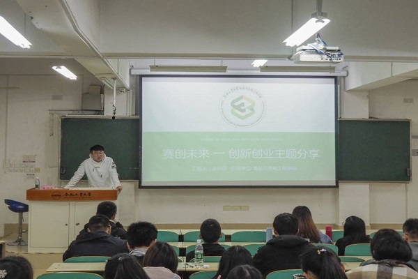 在培训会上,凌训延学长首先讲诉了自己的创业经历,他结合自己的故事,强调了认真学习课本知识和积极参与课外活动的重要性。接着,他详细介绍了校内外各类竞赛,向同学们分享了他的参赛经验与收获,鼓励同学们培养自身创新性思维,并勇于将想法付诸实践。随后,食品科学与工程18-2班王露霏代表凌训延团队介绍了他们在安徽省服务外包创新创业大赛的参赛作品,鼓励更多的同学参与其中。最后,凌训延为大家指明了创新、创业中的注意事项,同大家开展了有趣的互动。
