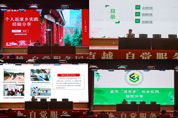仪式上,葛永莉介绍了本年度暑期“三下乡”的总体情况,着重从开展背景、实践选题、团队组建、个人实践、立项答辩和注意事项等方面进行详细介绍,期间穿插具体案例。随后,往年优秀实践团队代表和个人代表分别进行经验分享。陈海杰、陈智绮从团队实践项目出发,分享了团队实践选题、立项申请撰写、实践具体推进、实践宣传报道和项目成果总结等内容,而徐萌和陈彬睿同学则结合个人实践内容,强调了个人实践对接、发挥专业优势、突发状况应对和资源整合利用的重要性。最后,公司团委书记万代林从实践指导老师的角度,强调了实践团队组建、指导老师选择、实践安全保障和实践成果凝练等方面的注意事项。