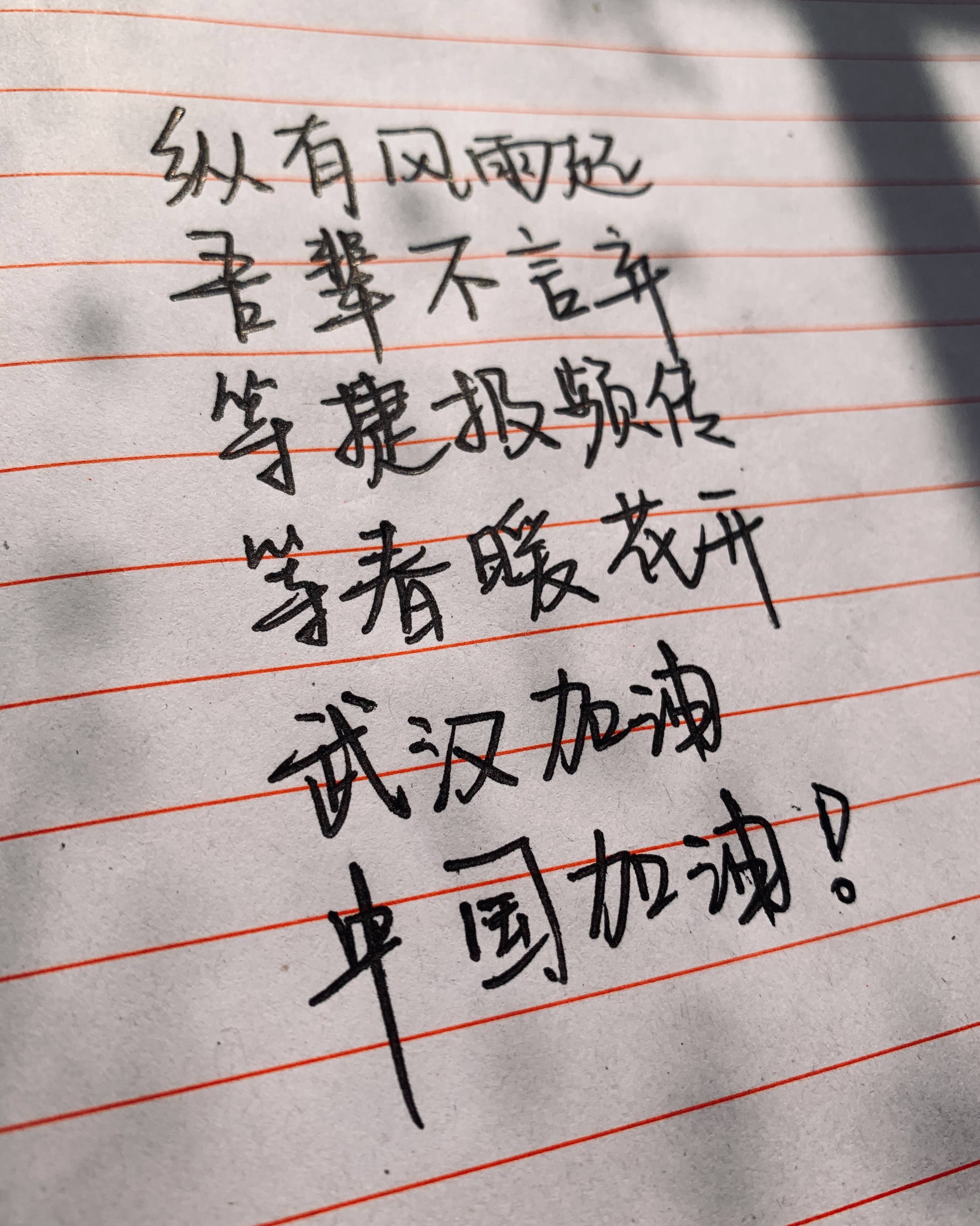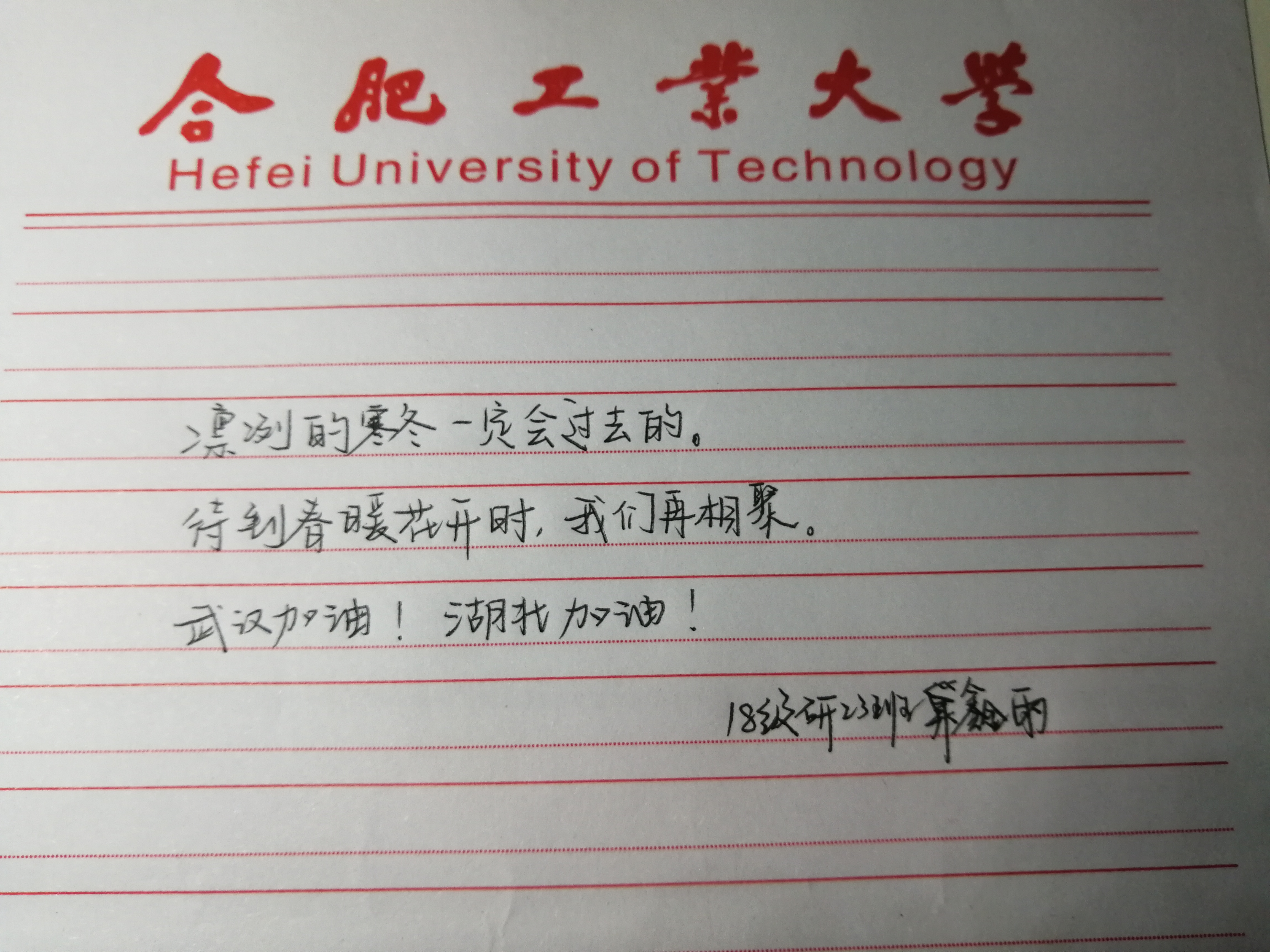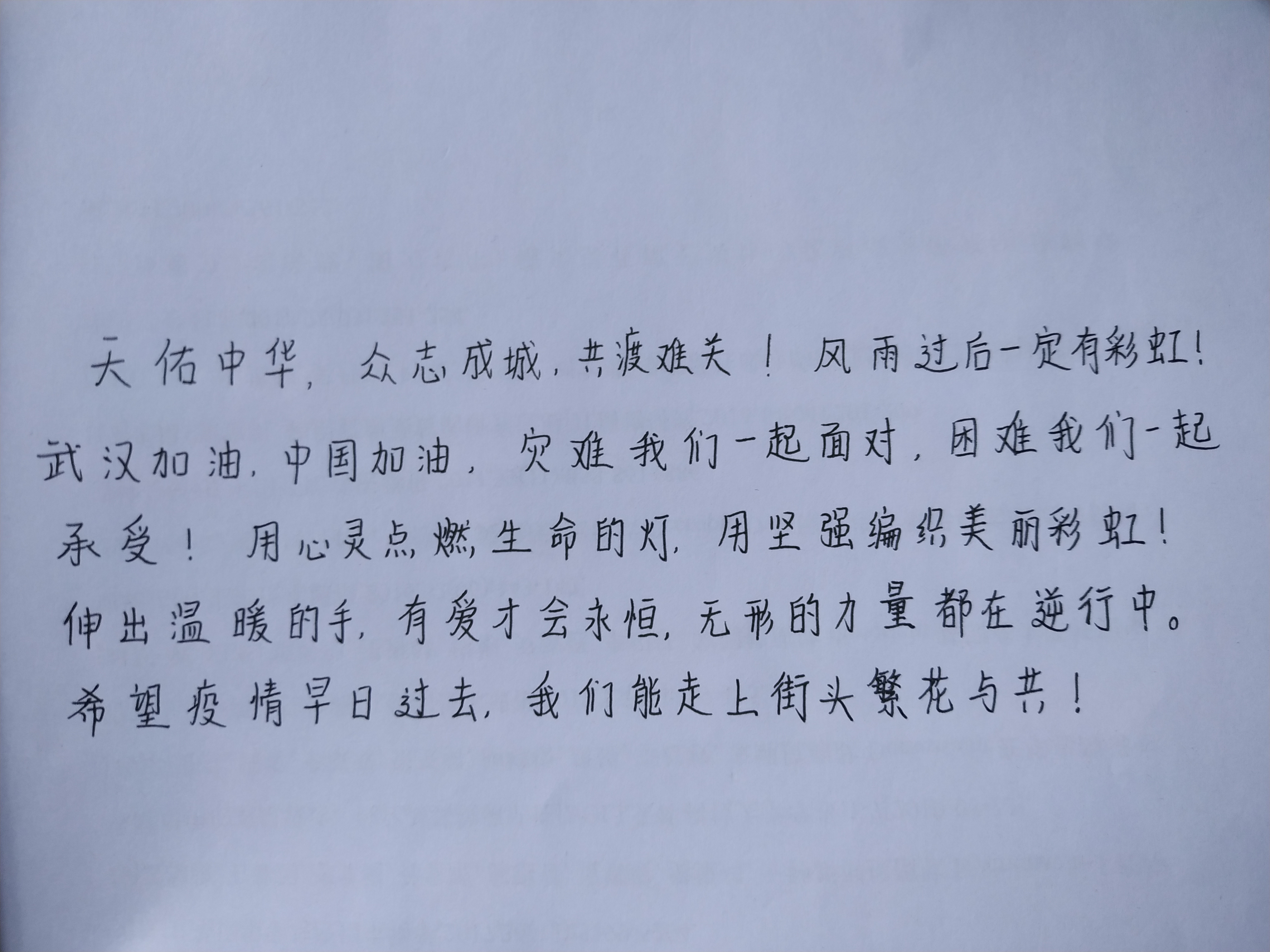 亲爱的武汉!这个二月,有份温暖想对你说!来自英国365集团官网的小伙伴们积极响应疫情防控安排的同时,用图片谱写下自己对武汉想说的话语,一笔一画勾勒出对武汉、对国家最真诚的祝福,期待着战胜疫情的捷报传来!