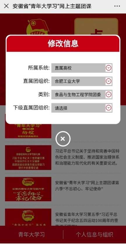 第三步:在下级直属团组织中选择自己的班级,然后输入自己的名字。