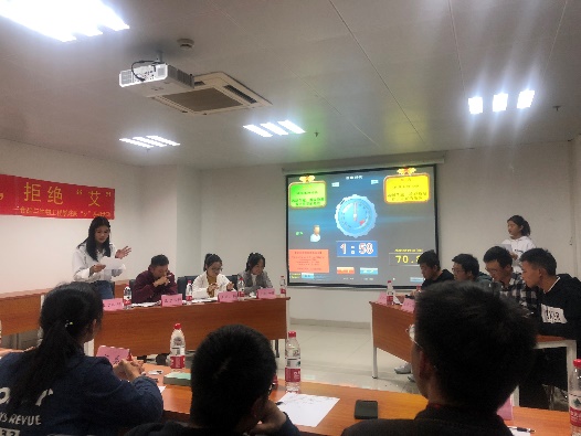 11月14日晚19:00,由食生院主办、食生院研究生会承办的防艾主题辩论赛在食生院大楼208室隆重举行,辩论赛队员由正方研究生战队和反方本科生战队组成,双方就辩题“遏制艾滋,政府和群众谁扮演更重要的角色?”展开了激烈辩论。