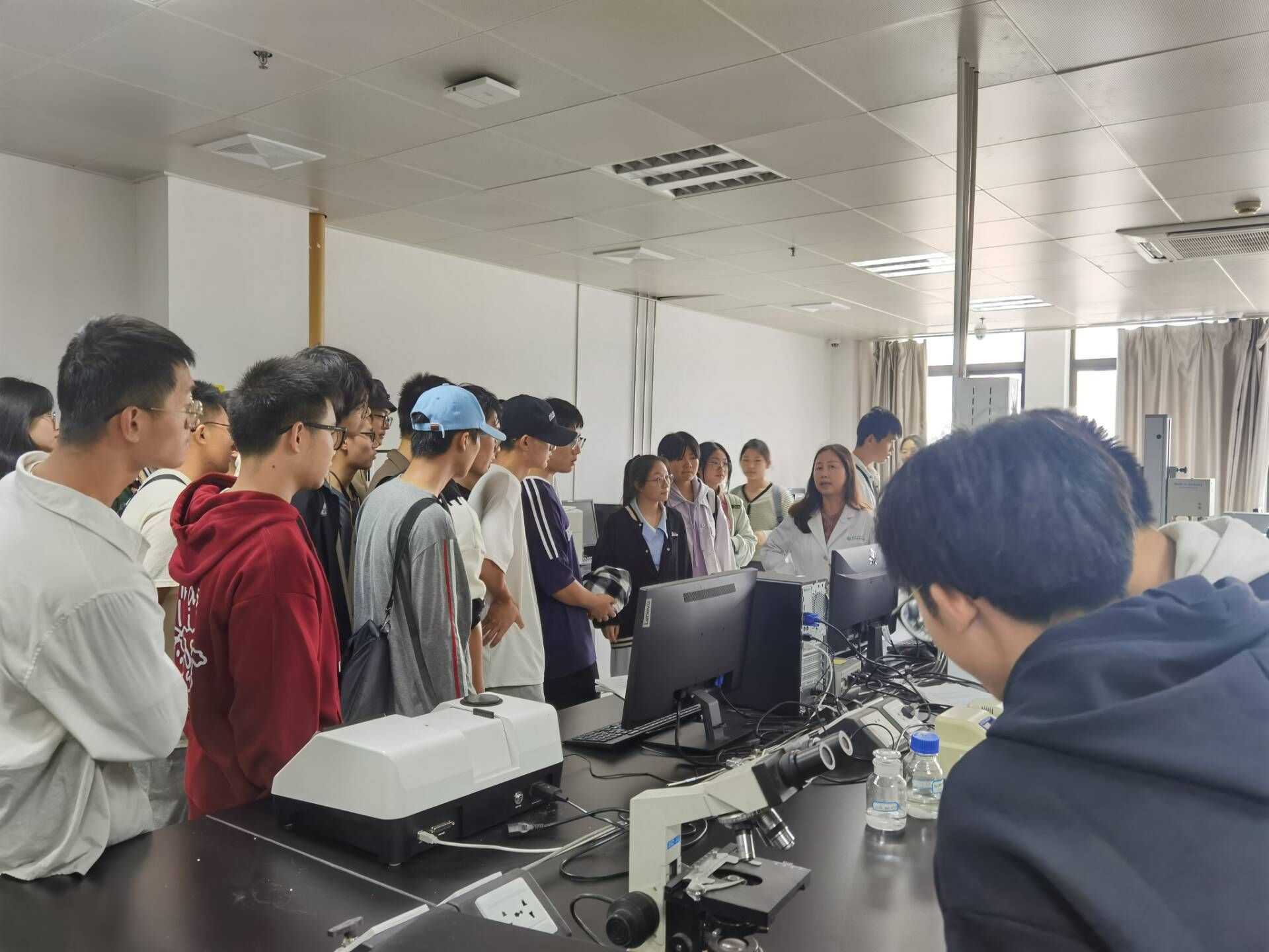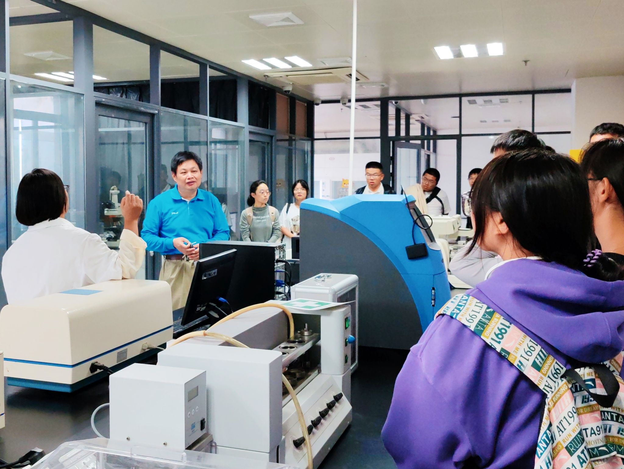 本次实验室认知教育活动,由新生班主任老师带队,前往参观公司大精仪平台和公共实验室。在大精仪平台参观学习过程中,实验中心的老师们详细地为同学们介绍了各类精密仪器的工作原理、运用场合、使用方法和注意事项。在公共实验室参观学习中,同学们了解到一些常见实验的操作方法和实验室安全注意事项。同学们对于各类精密仪器和实验产生了浓厚的兴趣,实验中心老师们一一解答了同学们的问题,现场讨论氛围热烈。