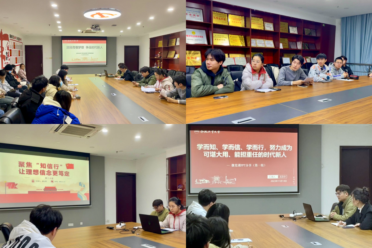 首先,各组长带领同学们集中学习典型人物故事,就如何做时代新人为主要内容展开主题研讨。第一组同学们以“以科学家精神为指引 争当时代新人”为主题,深刻解读了学而知、学而信、学而行的内涵,以科学家精神为指引,并就如何做到知行合一,及在校期间如何磨练自己展开分享。第二组同学们以“青春逢盛世,奋斗正当时”为主题,通过介绍三代航天人,鼓励同学们成为新时代的奋进者、开拓者、奉献者,让青春在服务人民、报效祖国的奋斗中闪耀光芒。第三组同学以“聚焦‘知信行’,让理想信念更笃定”为主题,阐述了“知”是前提,“信”是关键,“行”是重点,并强调只有在不断实践中,才能进一步实现自己的人生价值,努力成为可堪大用、能担重任的时代新人、国家的栋梁之才,不辜负党和人民期望和重托。第四组同学以“学而知,学而信,学而行”为主题,引导广大青年认清自己肩负的使命与担当,不负习近平总书记的殷切希望,用自己创新、求实、拼搏、顽强的行动谱写出新时代中国特色社会主义的青春之歌。