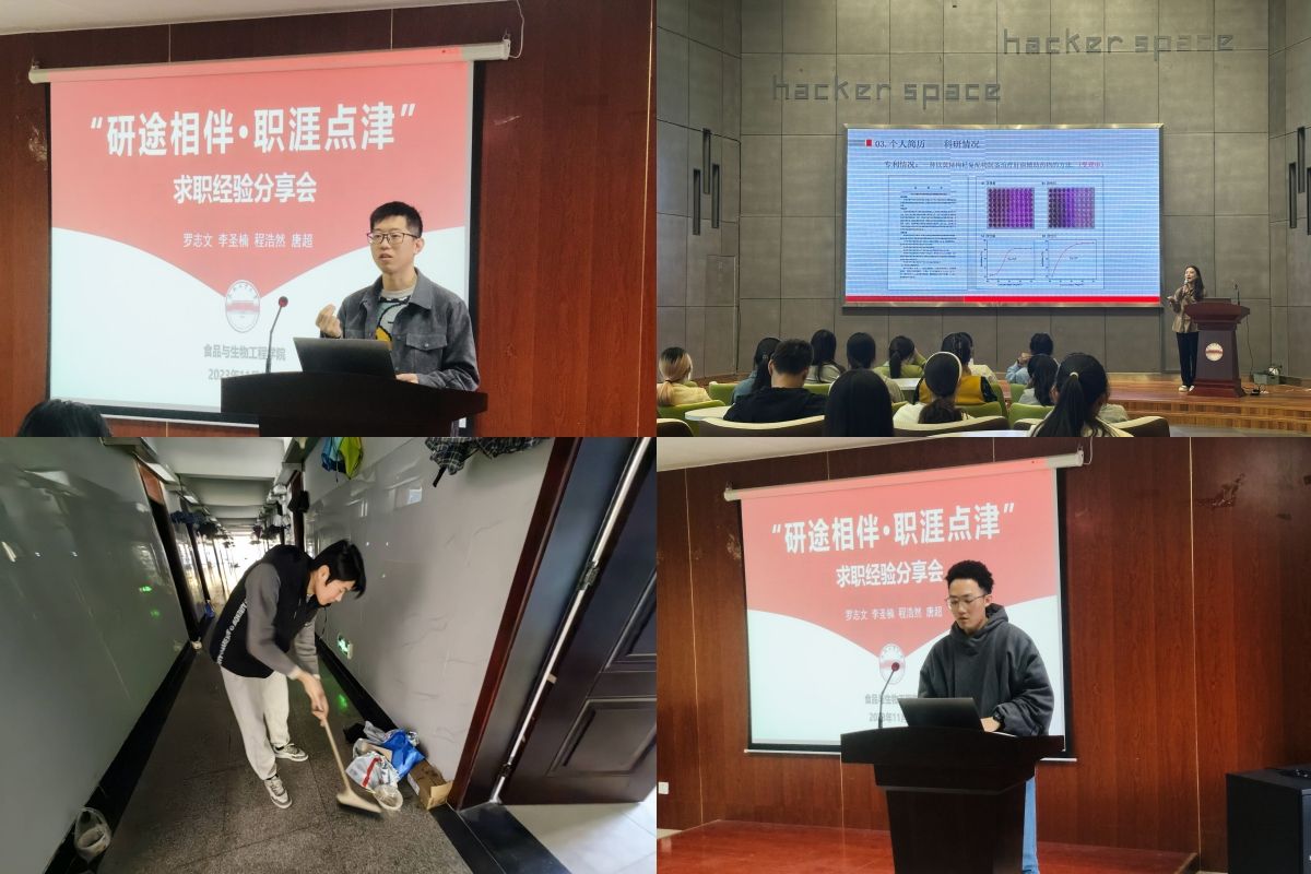 办实事,提升服务意识。倡导每位学员为师生办一件实事,践行全心全意为人民服务宗旨意识。本科生在各自楼宇完成垃圾清理工作,同时对各年级进行卫生宣传引导工作,研究生则面向所在党支部员工开展求职科研经验交流分享会。