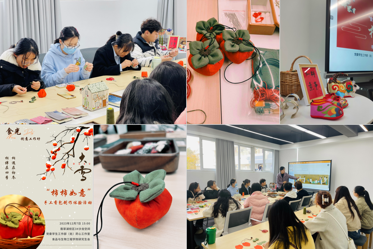 大雪渐寒,岁暮清欢;愿好“柿”发生,“柿柿”圆满。此次活动进一步传承传统佩饰香包的技艺和文化,有效增强了广大研究生员工的获得感、成就感、幸福感,掌握了必备的劳动技能,让爱美之人发现美、创造美,提高审美能力,展示青春活力。