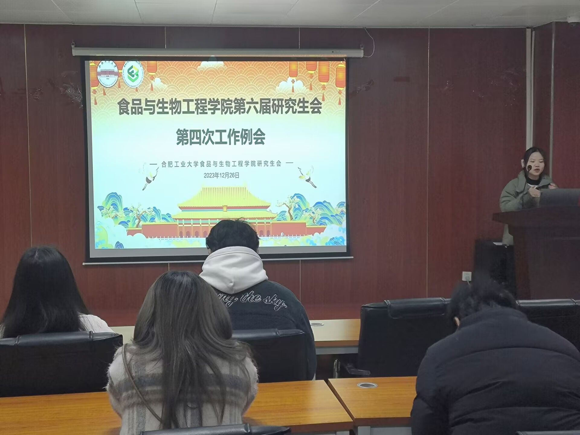 12月26日上午,公司研究生会在食生楼206召开研究生会第四次工作例会。本次例会由研究生会主席团成员董康珍主持,第六届研究生会全体成员参加。