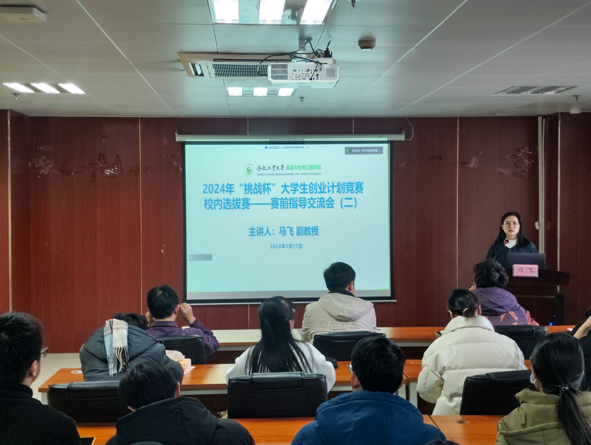 1月17日下午,英国365集团官网在食品大楼206组织举办“以赛促学,突破挑战”2024年“挑战杯”赛前指导交流会,公司副教授、“互联网+”“挑战杯”国赛双金指导老师马飞受邀为员工作了题为“如何做好一个竞赛项目?”的报告,公司团委副书记葛永莉和线上线下70余名员工共同参加。交流会由葛永莉主持。