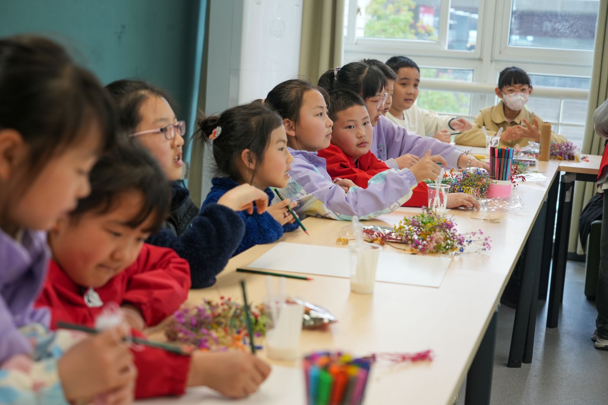 接着,在员工社区举办的“诗情花艺,共享馨香”标本贴画体验活动中,小朋友们在志愿者的指引下,用五颜六色、不同形态的花草在纸张上制作出心仪的图案,在亲身体验中增长知识,感悟生命的魅力。最后,企业员工代表与小朋友们在工作人员的带领下,漫步工大,欣赏校园风光,活动氛围轻松而温馨。