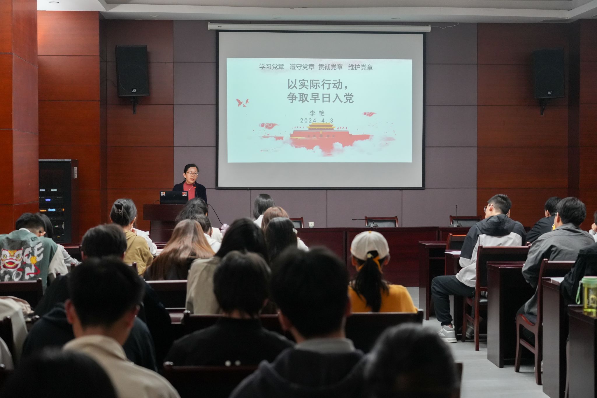 开班典礼结束后,李艳书记给学员们带来了《以实际行动,争取早日入党》专题党课。党课中,李艳首先通过互动方式,引导学员们思考向党组织靠拢的初心,解读回答“我们为什么要入党”这个关键问题,引导学员们端正入党动机。随后,她结合习近平总书记对教育工作和青年员工提出的重要要求和寄予的殷殷嘱托,对培训班学员提出了规划自身成长路径,实现自我人生价值的建议。李艳还带领学员学习了党章内容,引导学员切身体会共产党员坚定的信念和无私奉献的精神,勉励食生学子要做信念坚定的时代新人,坚定不移听党话、跟党走,为国家大健康战略贡献青春。最后,她通过警示教育案例,引导全体学员要牢记全心全意为人民服务的初心,树立廉洁意识,增强纪律意识。