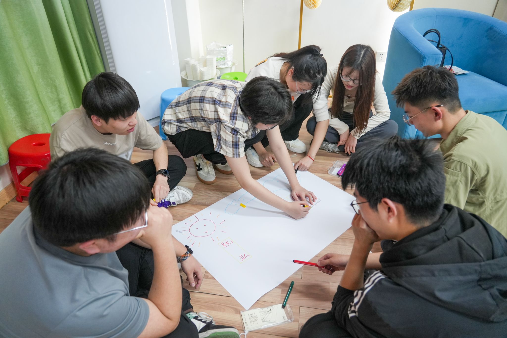 活动伊始,李艳首先向同学们介绍了目前食品、生物、制药等行业的就业形势以及此次团体辅导的目标任务、时间安排和团队规范。接着,通过有趣的热身游戏进行破冰,同学们根据游戏规则随机分成了5组,每组由一名同学分享自己在组队过程中找到队伍或在落单时的心情,在此过程中,李艳引导同学们学会郑重地自我介绍,学会换位思考,以便给人留下良好的第一印象。随后,在“天使的秘密”环节,同学们随机抽取名字便签,确定自己今后需要保护的“天使”,并依次进行自我介绍,这为以后团辅活动的持续开展打下坚实基础。在“串糖葫芦”游戏中,各小组同学认真倾听、充分沟通,迅速建立联结。游戏结束后,各小组成员积极分享感受,同学们逐渐互相认识、了解。