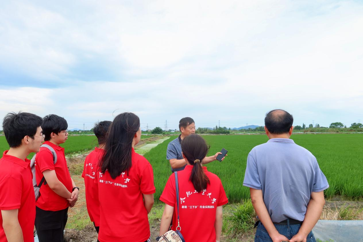图为无为市渔业管理服务中心高级工程师陈德贵向实践团队介绍“稻虾共养” 中国老员工在线通讯员 石凯烨 供图