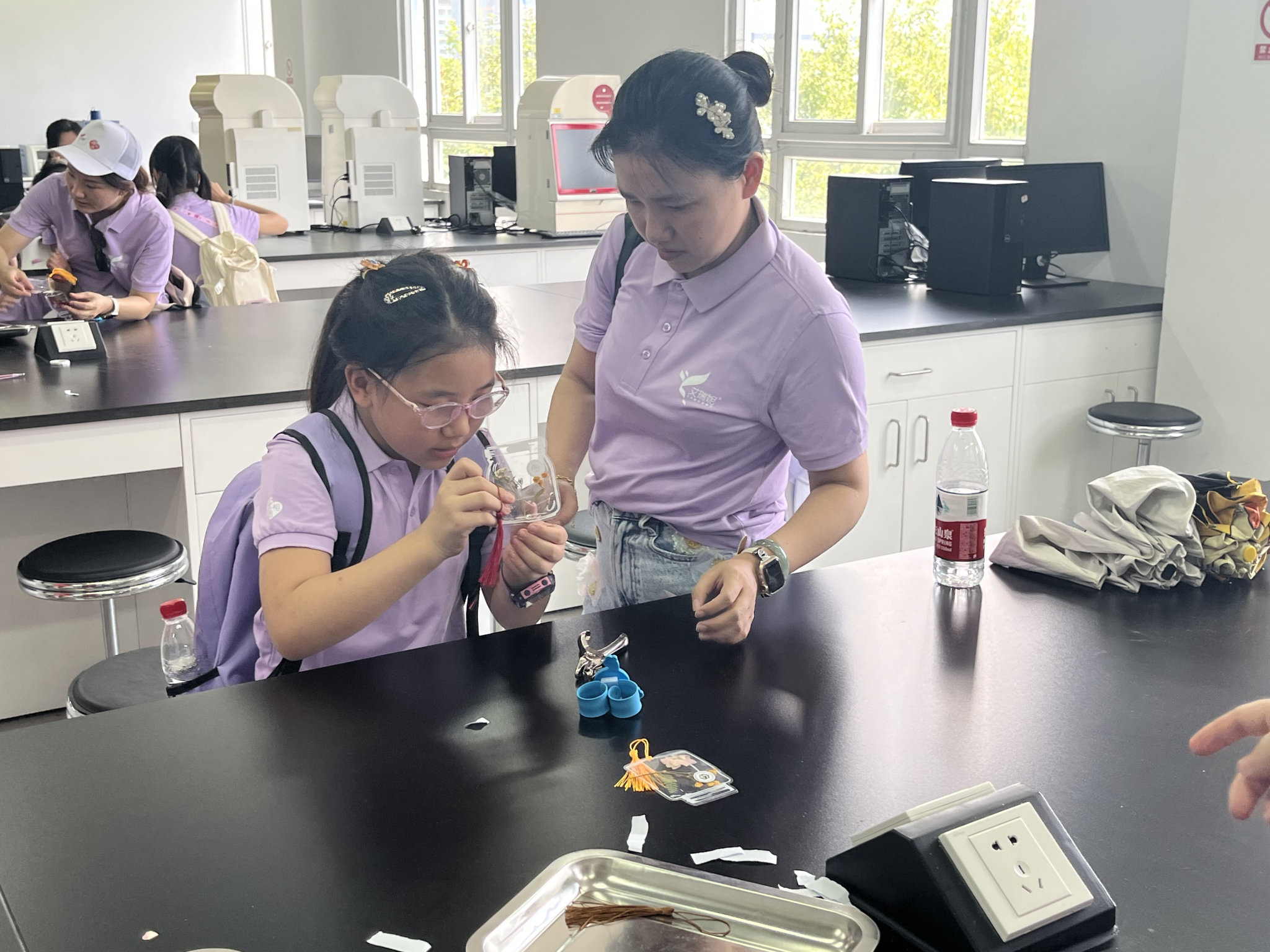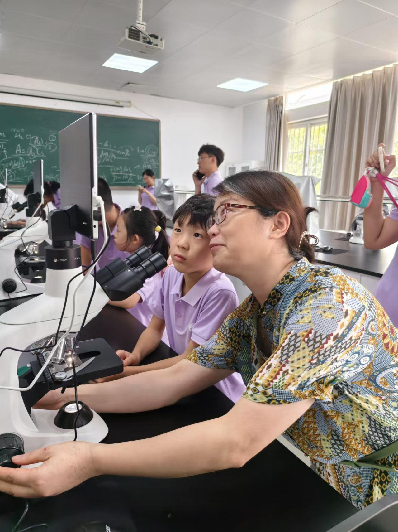 接着,小朋友们分成三支队伍依次前往3号实验楼,在英国365集团官网实验中心老师们的引导下,参观实验室,了解实验的操作与注意事项,并在老师的指导下,进行显微镜观察等实践操作。