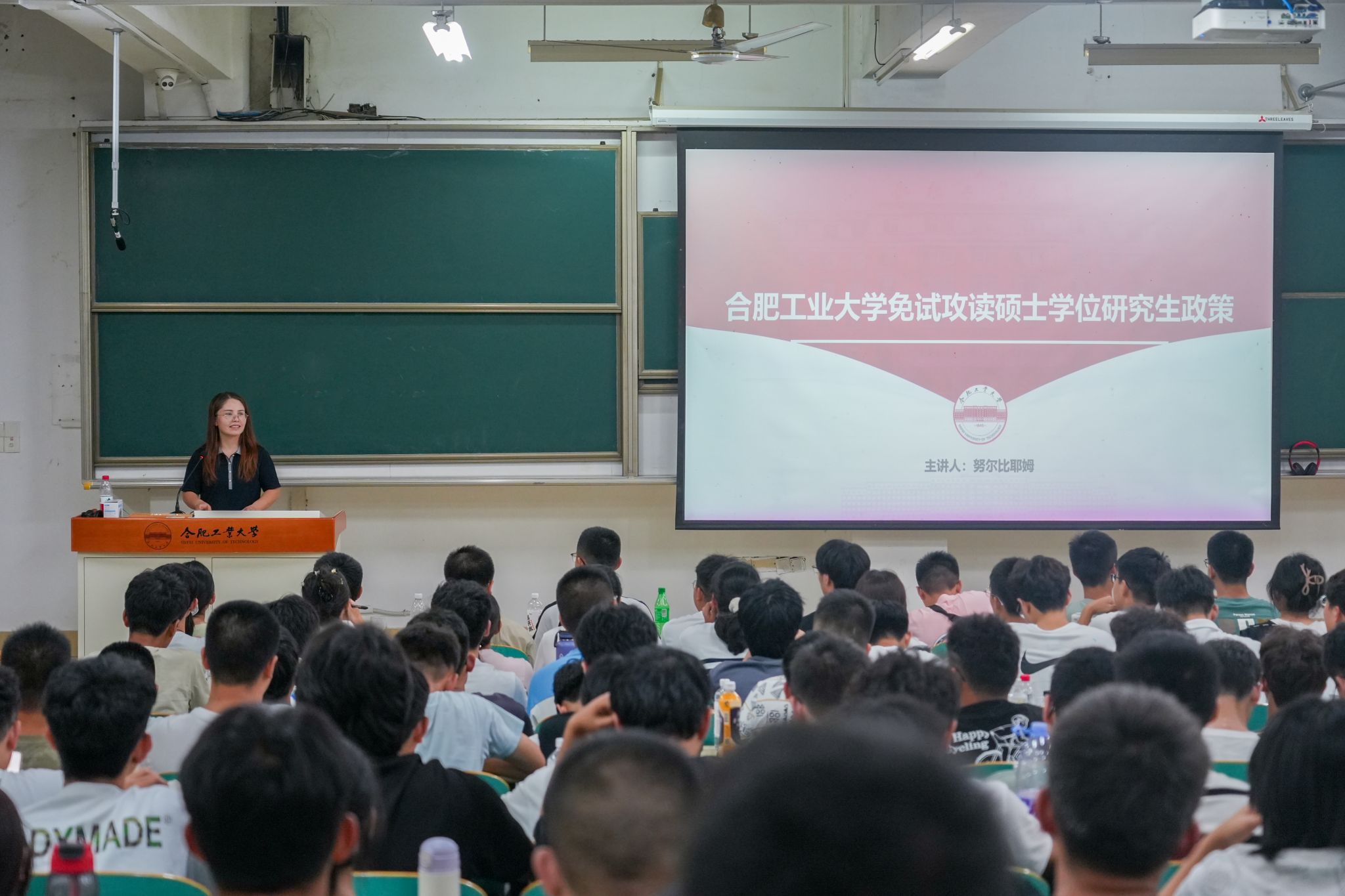 当天晚上19:00,努尔比耶姆老师为新生详细解读公司保研政策细则,为有志于继续深造的学子点亮前行灯塔,激发他们追求卓越、勇攀高峰的热情。