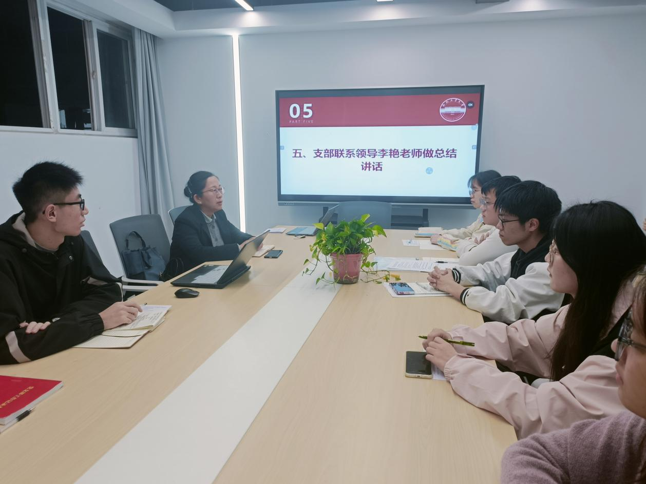 李艳强调,要以此次组织生活会为契机,深入研究查摆出的问题和会上提出的意见建议,进一步细化整改措施,共同改进提高。党支部全体党员干部要持续深化学习、提升党性修养、深化工作统筹、锤炼精神作风、严明纪律规矩;不忘初心,牢记使命,进一步发扬服务精神,对支部同学进行一对一帮扶,特别是结合毕业生的就业问题,发挥党员先锋带头作用。