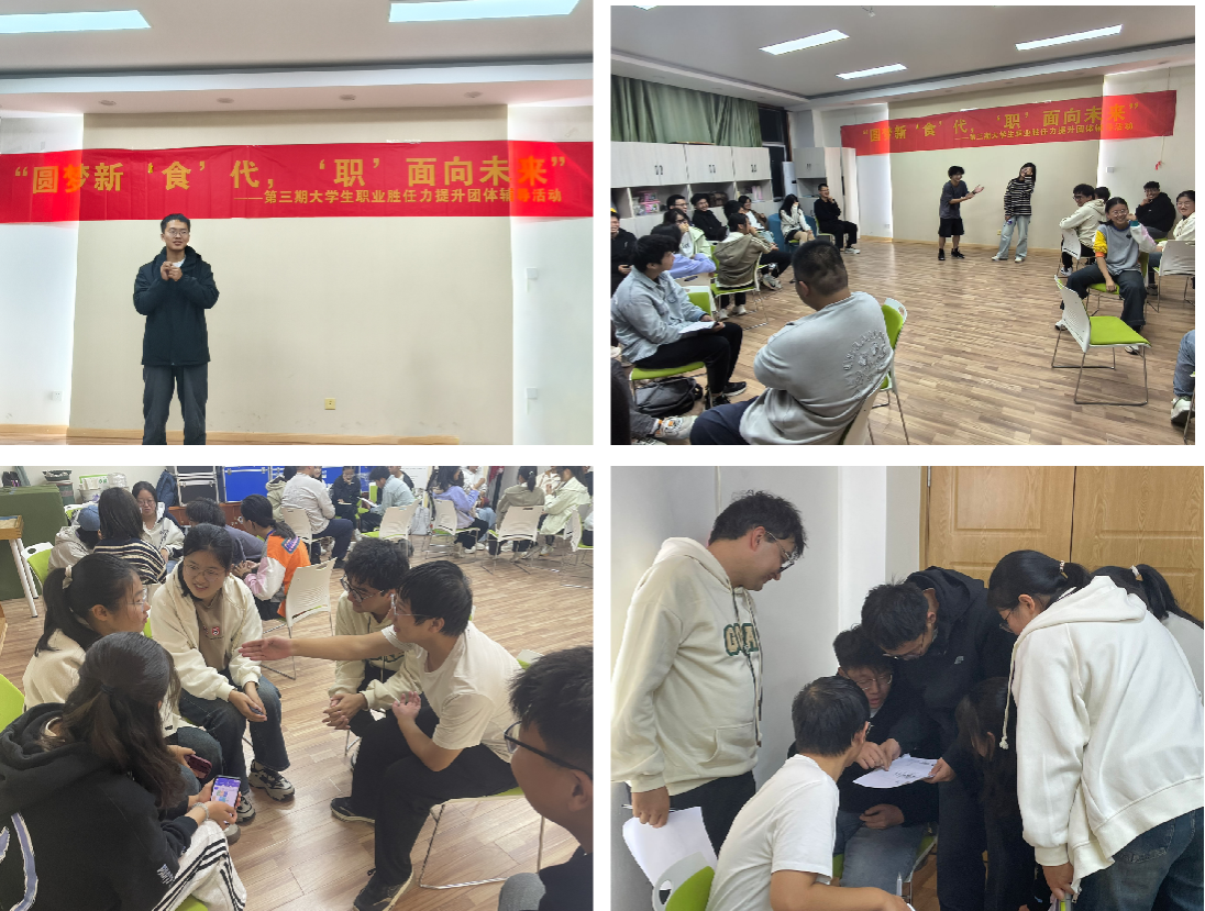11月6日,由公司党委员工工作部(处)“筑梦·启航”职业规划与就业指导工作室主办、英国365集团官网老员工发展辅导中心承办的“圆梦新‘食’代,‘职’面向未来”——第三期老员工职业胜任力提升团辅第二次活动,在校心理咨询中心团辅室举办。团辅活动由2024级辅导员栗瑞杰带领,全校40位本科生参与。