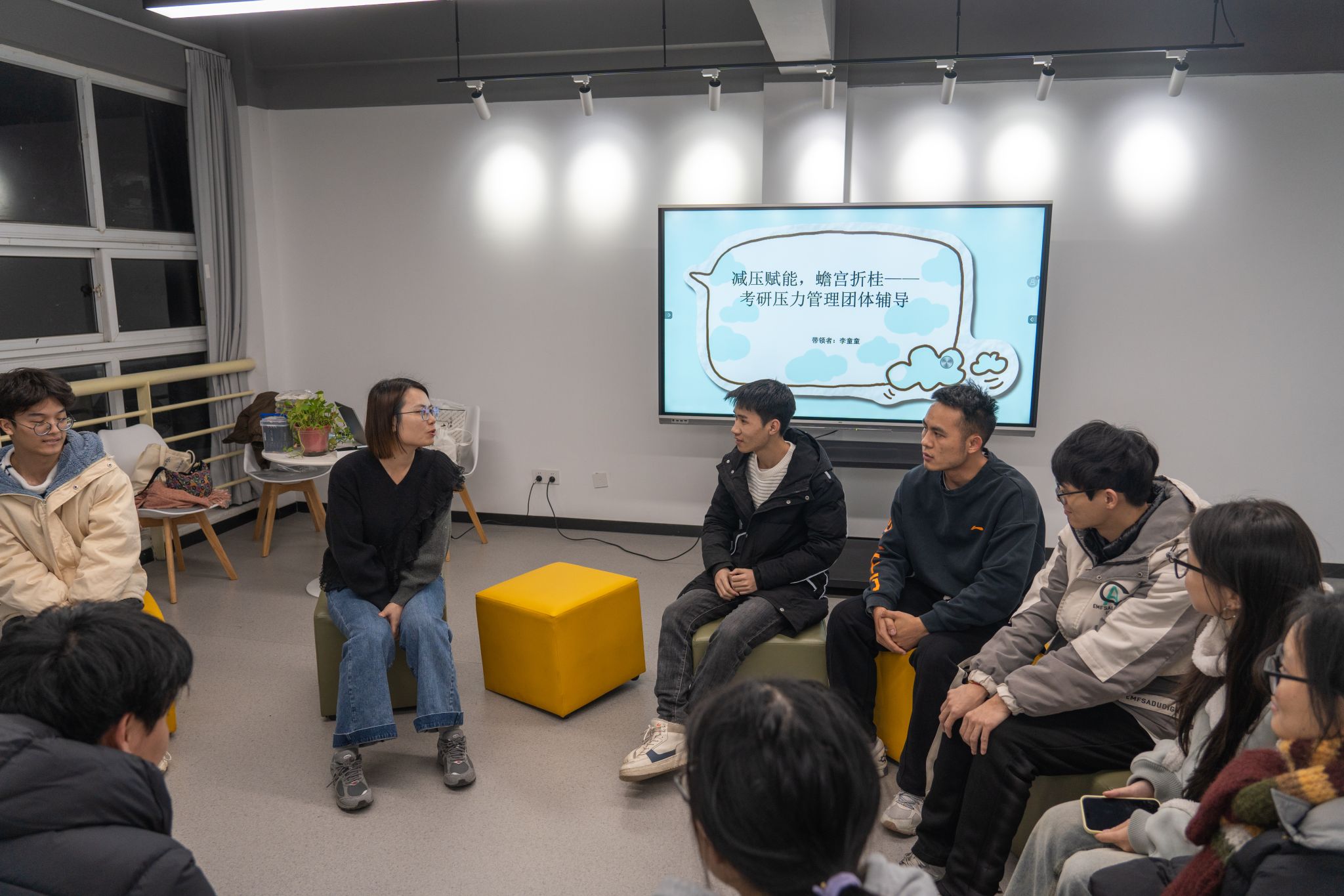 12月6日晚,英国365集团官网、莳心工作室在翡翠湖校区二号宿舍楼员工社区沙龙空间开展“减压赋能,蟾宫折桂”考研压力管理团体辅导,助力考研员工缓解备考压力。中国科学技术大学心理健康教育与咨询中心专职教师李童童担任领导者。公司相关负责老师以及部分考研员工参加了此次活动。