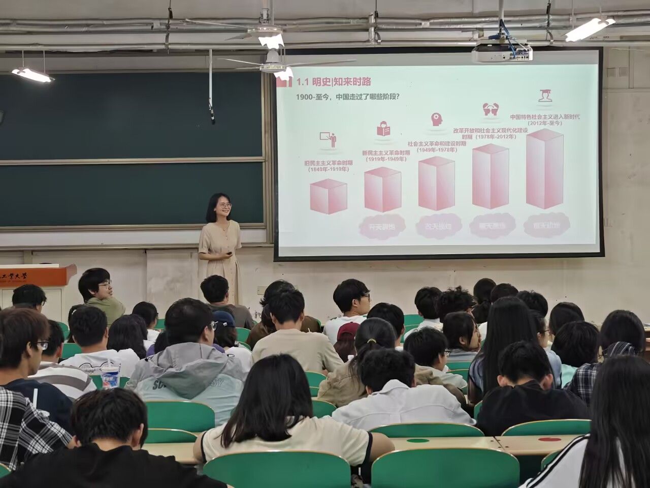 课程开始前,葛永莉以2025年贺岁档电影《唐人街探案1900》片段为导引,以“1900年前后,中国社会发生了什么?”作为开篇之问,开启了本次授课。接着,她与在场学员共同学习了旧民主主义革命时期、新民主主义革命时期、社会主义革命和建设时期、改革开放和社会主义现代化建设时期和中国特色社会主义进入新时代这五个历史阶段,以及一代代中国青年为了“救国大业”“兴国大业”“富国大业”和“强国大业”所作出的巨大努力。她强调,中国从救亡图存再到站起来、富起来、强起来,这背后凝聚着一代又一代青年人的智慧与奉献,国家的未来离不开一代又一代青年的接续奋斗。随后,她以公司优秀员工的事迹激励在场学员青年应当在强国大业中担当作为。