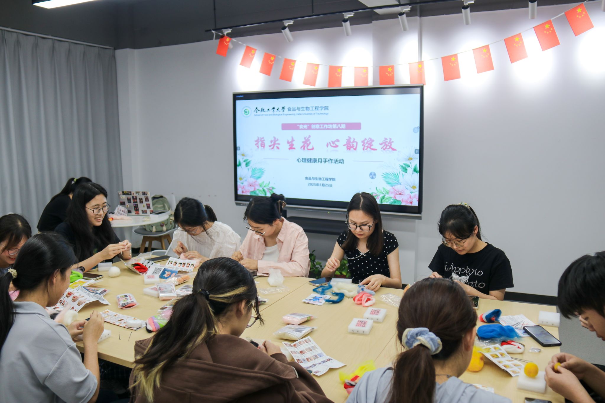 为发挥美育丰富精神、温润心灵的育人实效,5月25日晚,“食光”创意工作坊在翡翠湖校区五号社区沙龙空间开展第八期“指尖生花,心韵绽放”心理健康月手作活动。20余名同学通过第二课堂报名参加。