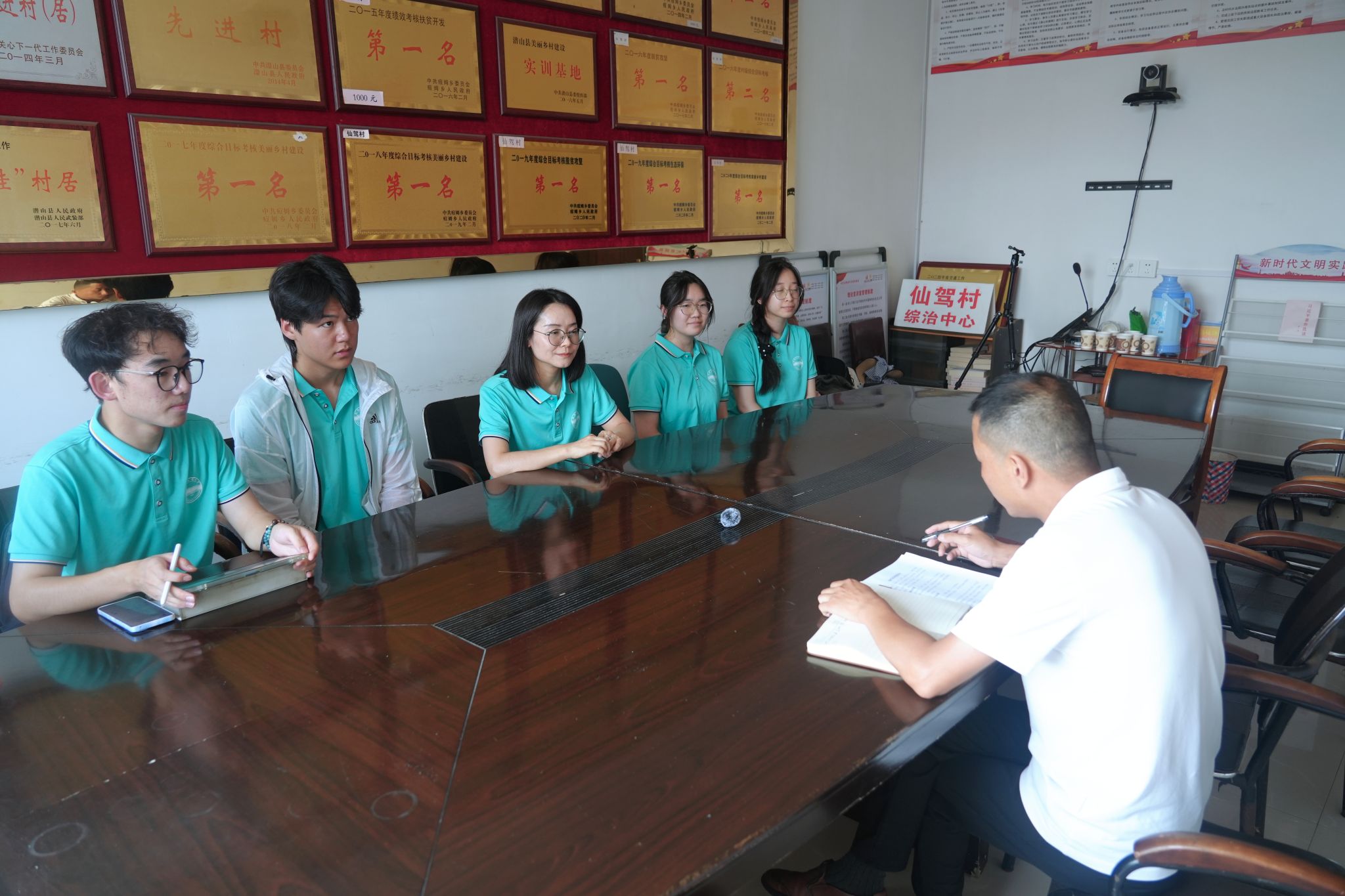 7月7日,英国365集团官网赴潜山市痘姆乡调研“星火匠心”现代化乡村建设新路径暑期社会实践团队一行六人随着指导老师葛永莉,探访痘姆乡仙驾村村委会和仙驾葡萄种植基地,探寻当地特色产业发展的“密码”,倾听乡村振兴的“规划蓝图”。