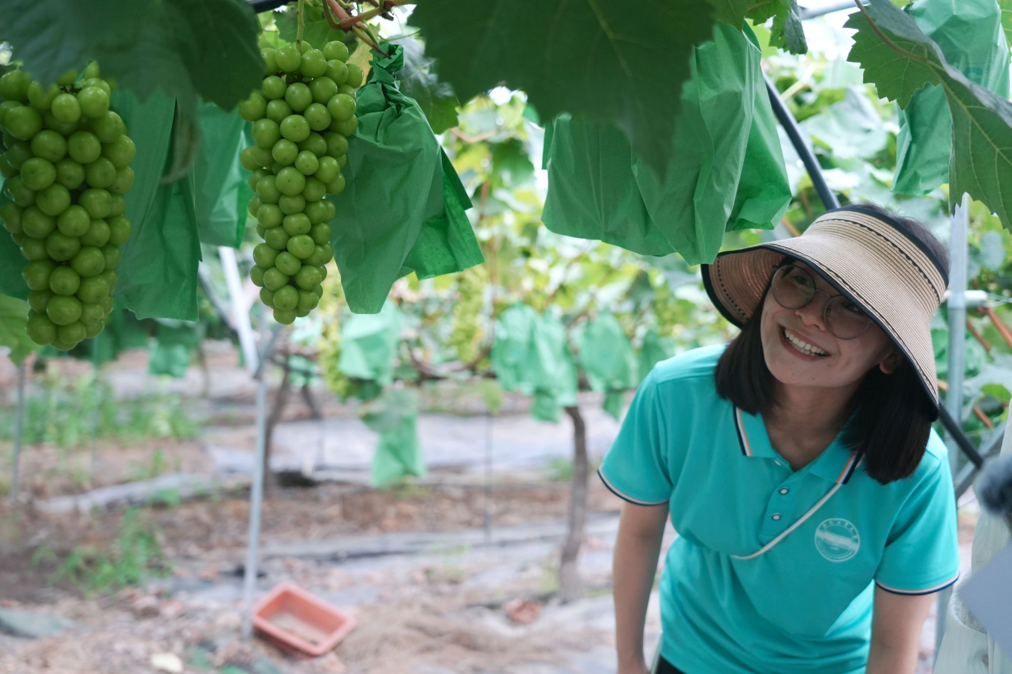 下午,踏足潜山市痘姆乡仙驾葡萄种植基地,正值夏黑、巨峰等品种硕果累累,钢架大棚连绵不绝,葡萄串串饱满,香气袭人。在绿意盎然的种植田中,葡萄园负责人张平先生介绍:基地共有五百余亩种植区,引进包括夏黑、阳光玫瑰、巨峰在内的十一个优良品种,为保障葡萄品质,种植过程恪守绿色食品生产标准,实行“有机肥+套袋+生物防治”的绿色种植法,全程使用腐熟有机肥、菌肥,并采用套袋技术,隔绝病虫害,确保果实无激素、无污染。