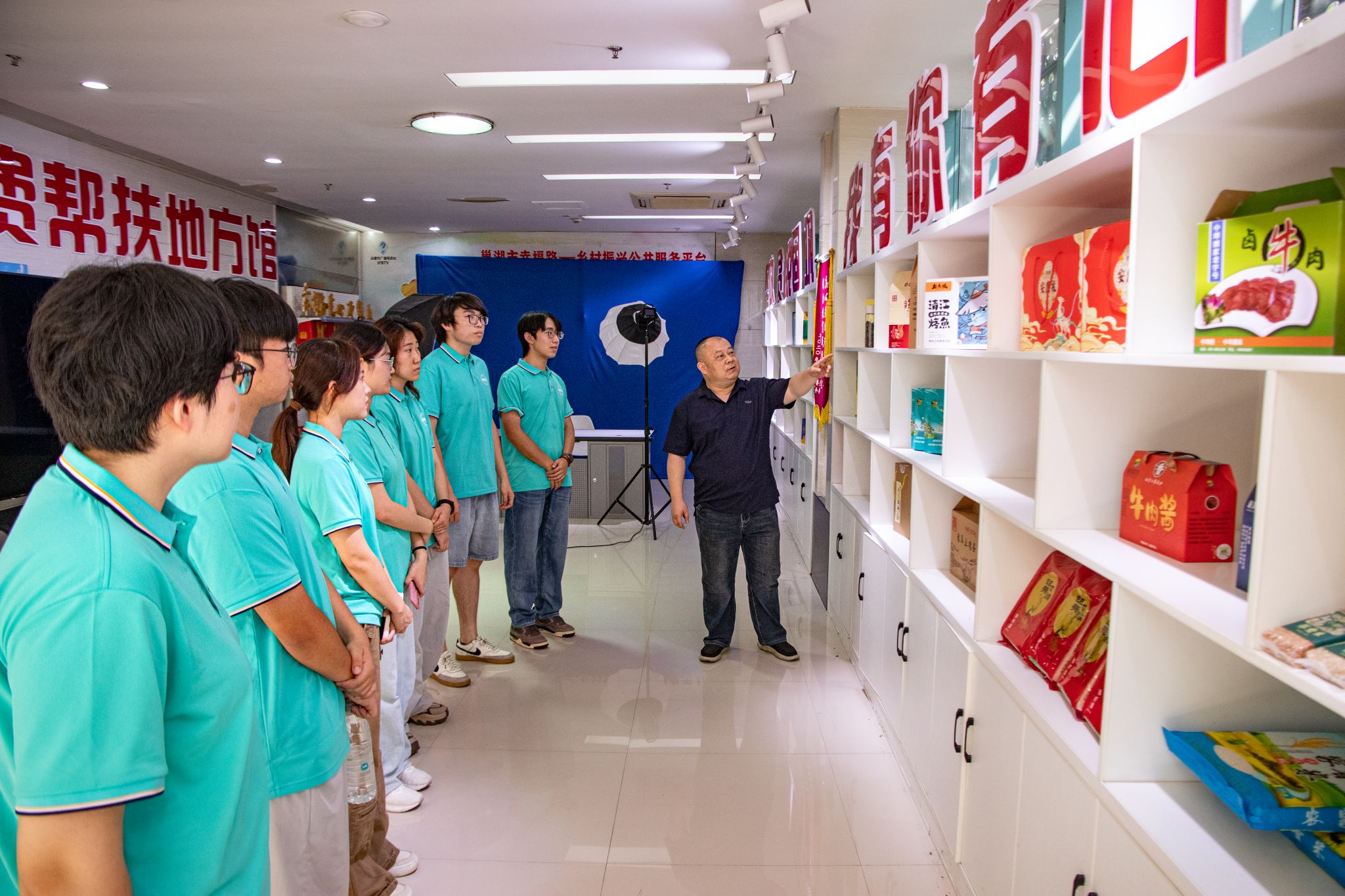 7月7日下午,团队首站抵达位于合肥广电大厦的幸福路消费帮扶公共服务平台。平台负责人盛诗明向学子们娓娓道来平台的“成长故事”——其诞生始终紧扣破解农产品“卖难”痛点,从搭建初衷到运营模式,无不以“助农”为核心。琳琅满目的巢湖特色农产品陈列区,无声地印证着平台连接“田间地头”与“广阔市场”的丰硕成果。座谈会上,双方围绕平台建立初衷、运营效益、目标群体、营销策略以及商户规模、销售数据等核心信息展开深度交流。墙上熠熠生辉的荣誉奖牌,正是社会各界对这份助农事业的最高认可。技术部门老师随后详细演示了农产品从信息录入、严格审核到最终上架的全流程,严谨的操作规范彰显着平台对产品品质的坚守。知名助农主持人李广松分享的“品牌赋能+媒体推广”策略令学子们深受启发,他以槐祥米厂为例,生动阐释了该模式如何助力优质大米实现“价量齐升”,直观展现了平台助农的切实成效。