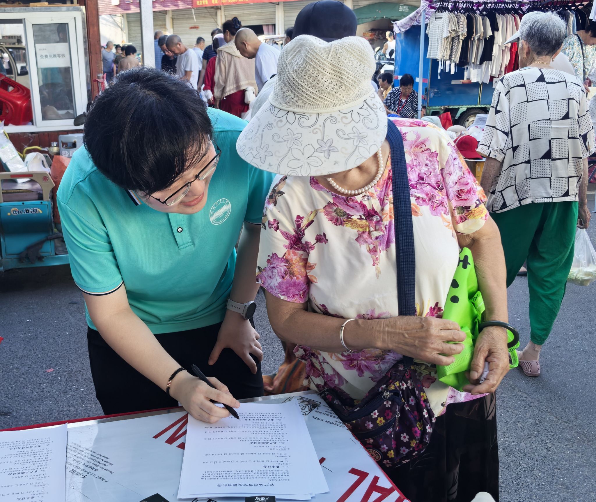 (图4 团队成员指导市民填写问卷)
