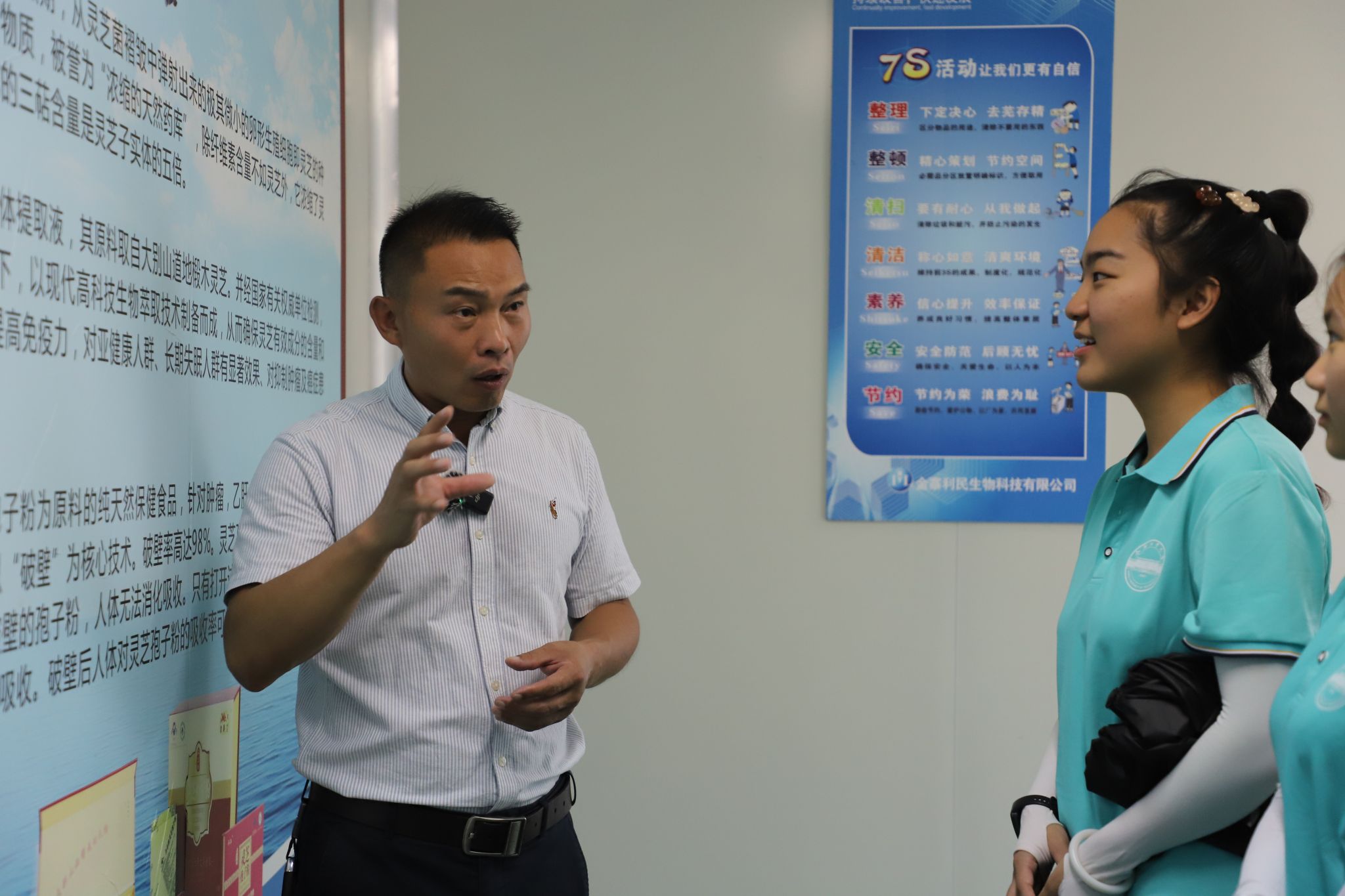 (图2、3 利民公司负责人为团队成员介绍企业)