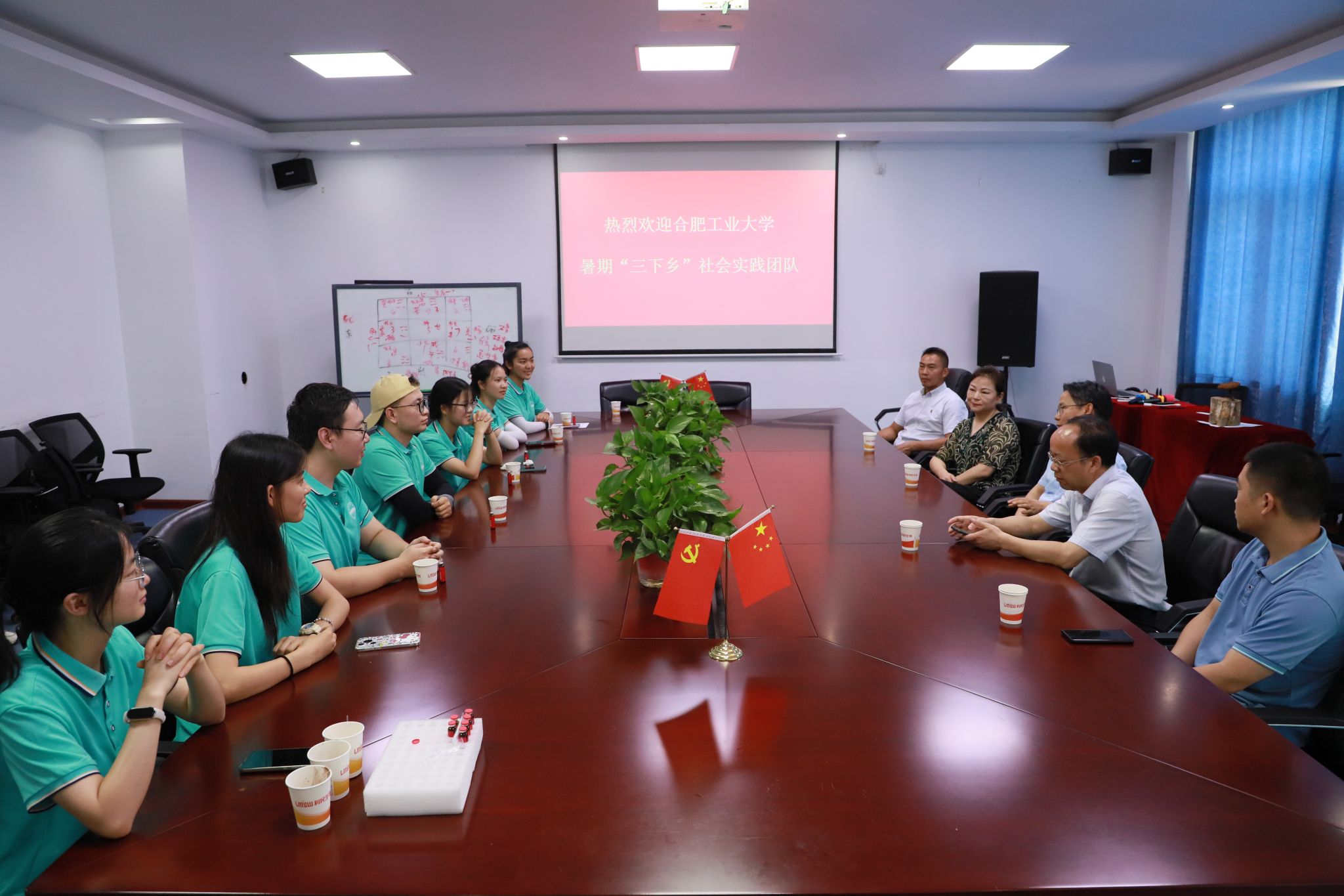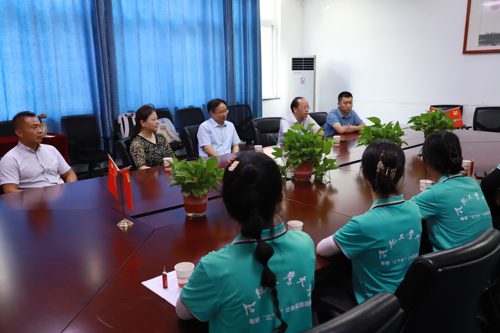 在企业调研告一段落之际,金寨县县委副书记胡劲松、金寨县中药材发展中心书记杜继甫专程莅临公司,与实践团队展开面对面交流。杜继甫首先详细介绍了金寨县灵芝产业的总体发展情况与产业布局,从种植规模扩张到产业链延伸,系统展现出灵芝产业在乡村振兴中的支柱作用。