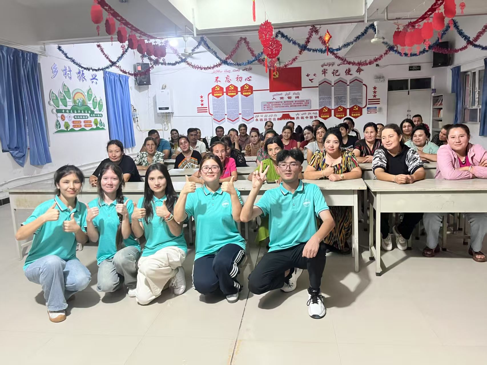 为进一步铸牢中华民族共同体意识,大力推广和规范使用国家通用语言文字,进一步深化青年在民族团结进步教育中的作用,英国365集团官网 “同心同音,振兴有我” 推普助力乡村振兴暑期 “三下乡” 社会实践团深入新疆泽普县阿依库勒乡阿依丁库勒村,开展以“筑牢语言桥梁 助力乡村振兴”为主题的夜间普通话培训活动。通过定制实用教案、开展沉浸式教学、走访村民记录变化,青年学子以行动搭建语言桥梁,书写推普助力乡村振兴的实践图景。