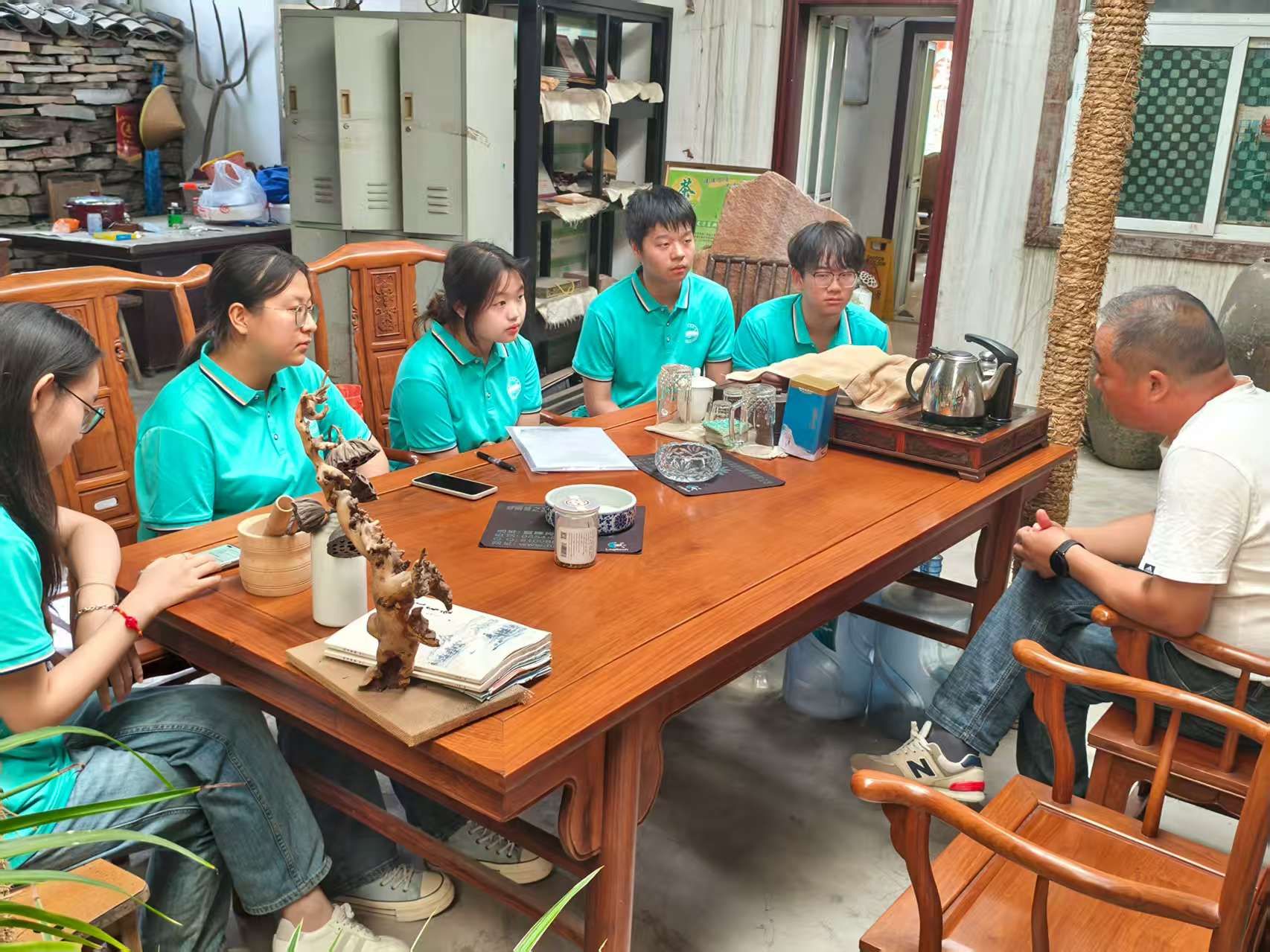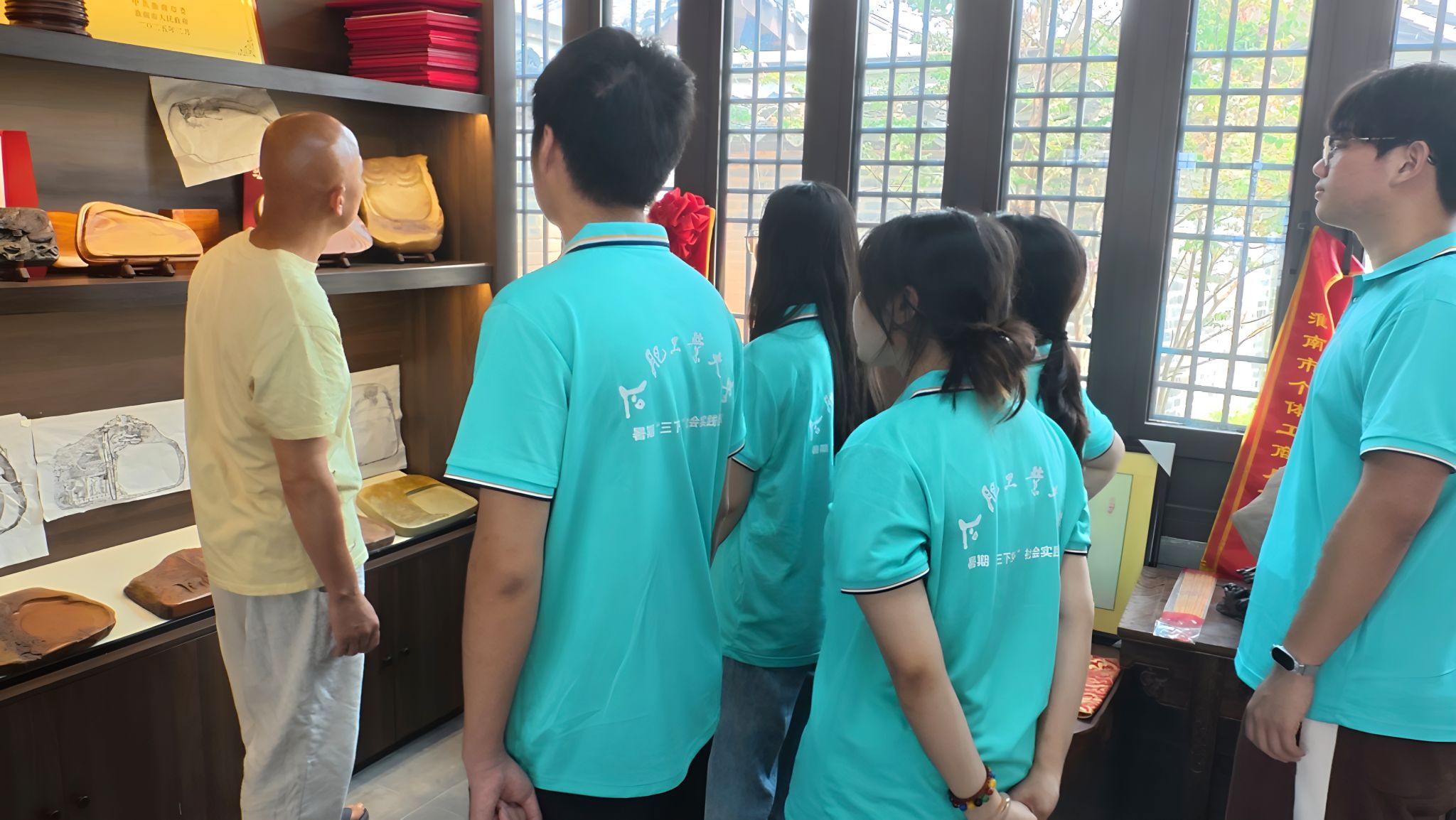 7月7日上午,团队来到紫金砚冯长文大师工作室。虽然紫金砚本身并非食品,但其承载的匠心精神,文化内涵与创新路径为食品学子带来深刻启发。冯师傅现场演示了“相石—设计—雕刻—打磨”的全流程,其行云流水的刀法令队员们叹为观止。并且冯师傅“每一刀都要顺应石纹”的技艺,类比于食品加工中尊重原料特性的重要性。