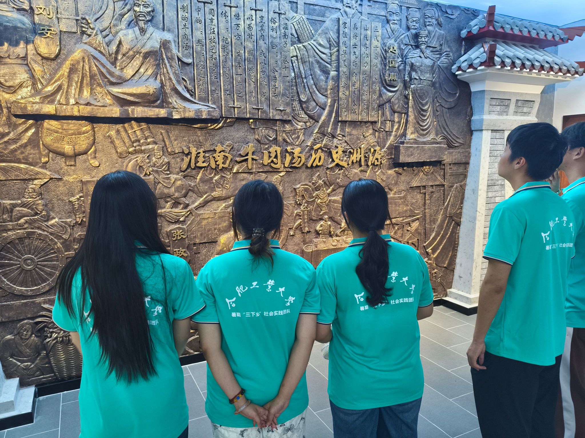 7月8日,实践团专程探访了淮南牛肉汤文化展览馆,学习“一汤千味”的熬制秘诀。并且随后拜访宋记淮南牛肉汤非遗示范店,感受“烫”的极致美学。传承人现场演示选用淮北牛骨、配以10余种香料的古法工艺,队员们惊叹于“汤清、肉烂、味厚”的技术标准。