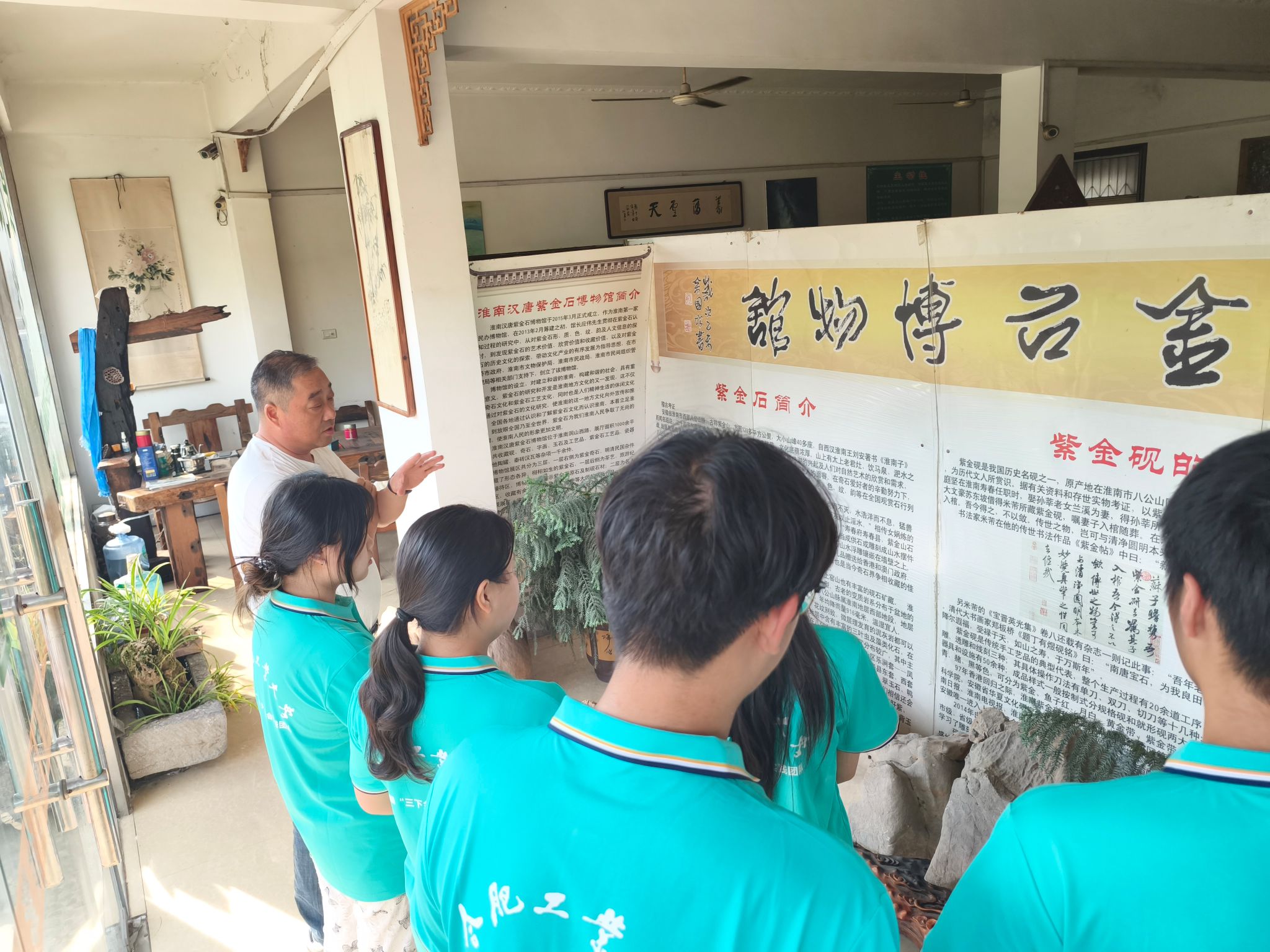 7月7日下午,团队成员到达淮南汉唐紫金石博物馆,应伟馆长带领队员们穿越时空长廊。从汉唐的质朴到明清的精巧,一方方砚台诉说着“质坚而润,色紫而雅”的千年风雅。深度访谈环节,应馆长提出的“将古城墙刻在紫金石上,结合淮南典故,把地域文化烙印在砚台之中。”的创新思路,启发队员们思考如何将地域文化元素深度融入食品设计来提升产品文化附加值。