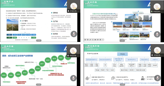 郭恒华董事长以“合成生物-生机无限”为题,从原料端、生产端、技术端三个方面介绍了合成生物学在资源可持续发展、清洁环保、节约土地方面的优势及未来趋势。郭董事长结合自身创业经历及安徽华恒生物科技公司的成长历程,对公司即将毕业的同学们提出了宝贵建议。郭董事长还介绍了安徽华恒生物科技公司在助学、助力抗疫等方面承担的社会责任,让同学们认识到了优秀企业家的社会担当和家国情怀。