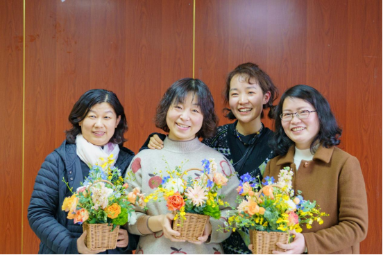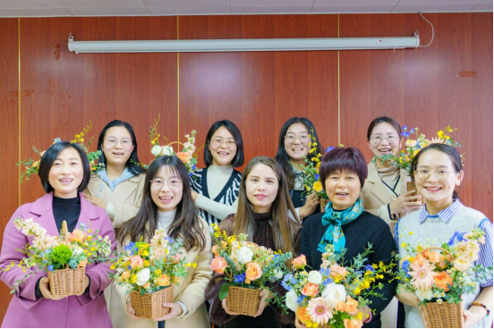 活动邀请了专业的花艺老师向女教职工们详细介绍本次插花使用的鲜花的种类、特点和寓意,并讲解了插花的基本技巧和构思方法。