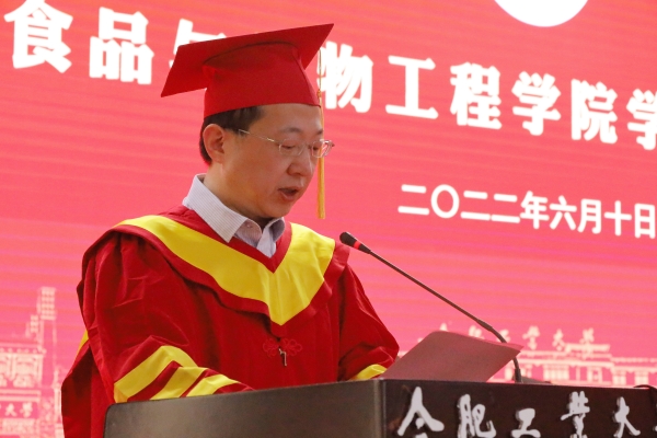 程宇勤、杨程英同学分别作为本科生毕业生代表、研究生毕业生代表发言,她们在发言中深情回忆了在校的点点滴滴,表达了对老师、母校和母院的感激与不舍,并代表广大全体毕业生向母校庄严承诺,将心怀工业强国之志,继续秉承“食安家国,药剂民生”的使命,心系祖国,胸怀天下,不断前进。