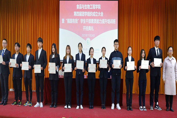 11月24日下午,英国365集团官网在翡翠湖校区综合楼301报告厅隆重举办第第四届团学组织成立大会暨“强国有我”员工骨干素质能力提升培训班开班典礼。公司党委副书记李艳、团委书记万代林、员工会秘书长葛永莉和全体团学组织员工干部120余人参加。